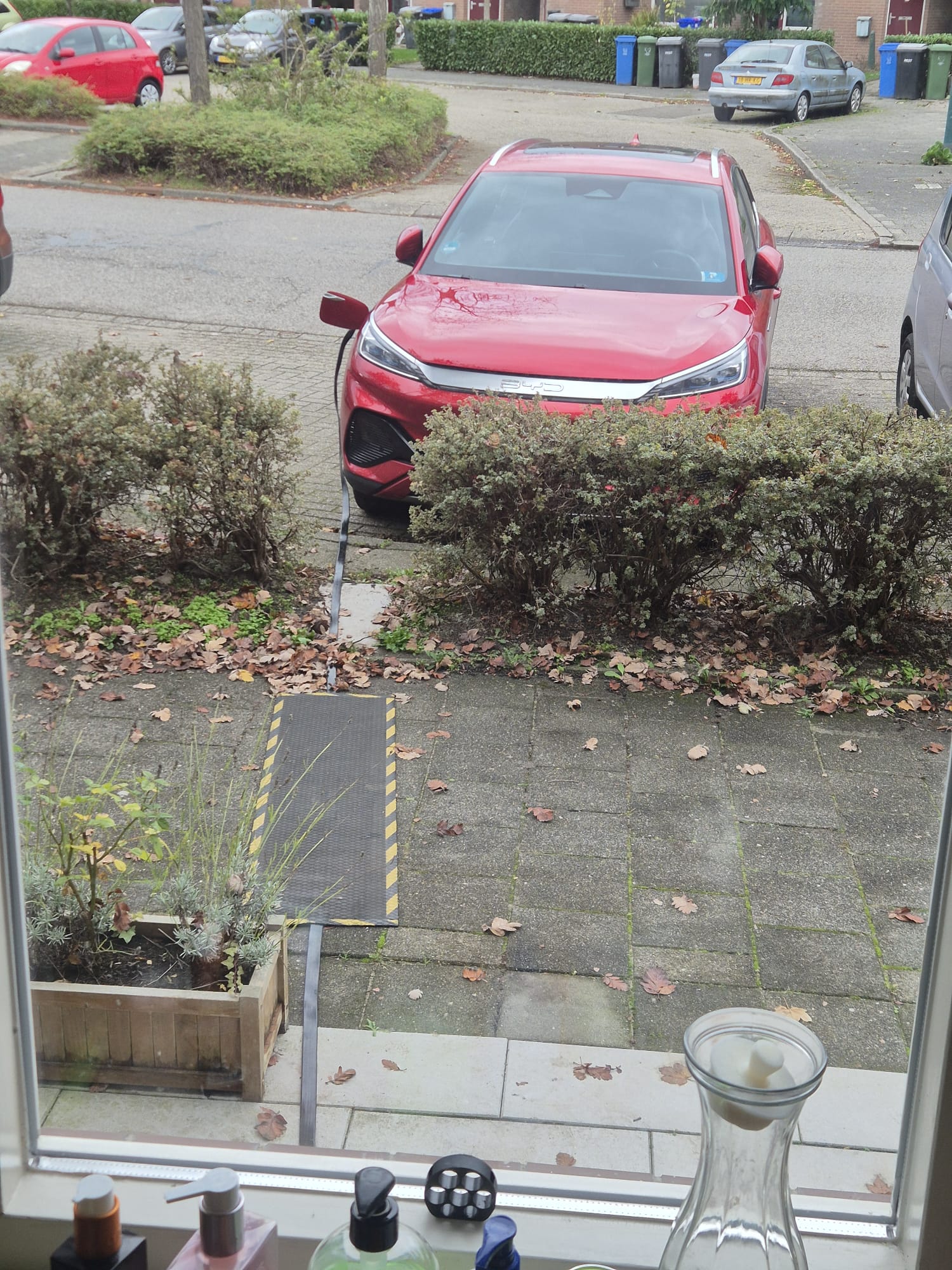 - EV laden over de stoep met platte laadkabel en kabelmat