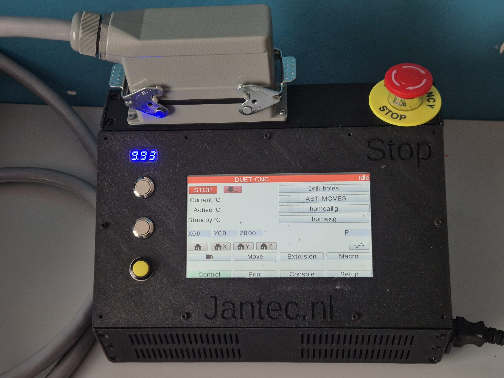 Piëzo-probes op alle start- en eindposities van de assen, in plaats daarvan heb ik eerst de FLY CDY V2 reprap board met TMC2209 en sensorless homing, en later met mechanische eindstops.