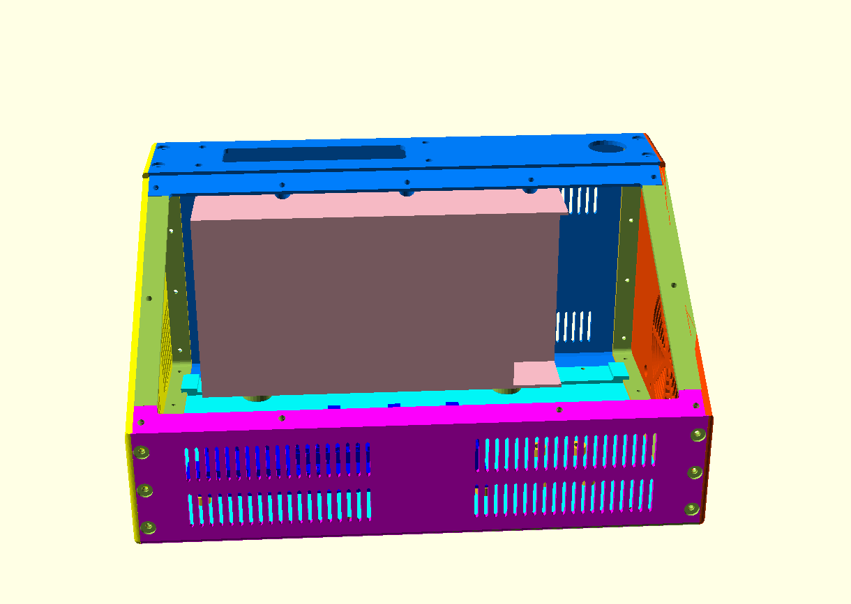 Dit is niet gedaan voor de voedingseenheid (PSU), hier komen korte M4 schroeven door de behuizing in de PSU