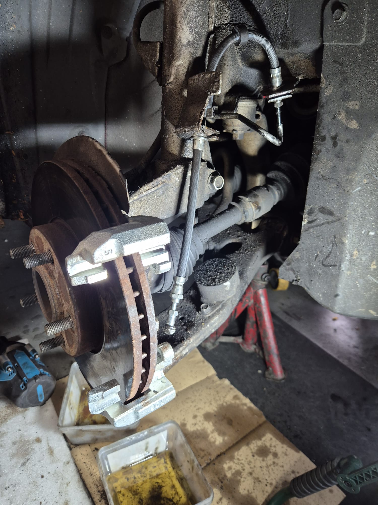 Voorafgaand aan de vervanging van de remmen hebben we besloten om preventief alles te vervangen dat waarschijnlijk toch een keer aan de beurt komt, wat betreft de remmen aan de voorkant dan.