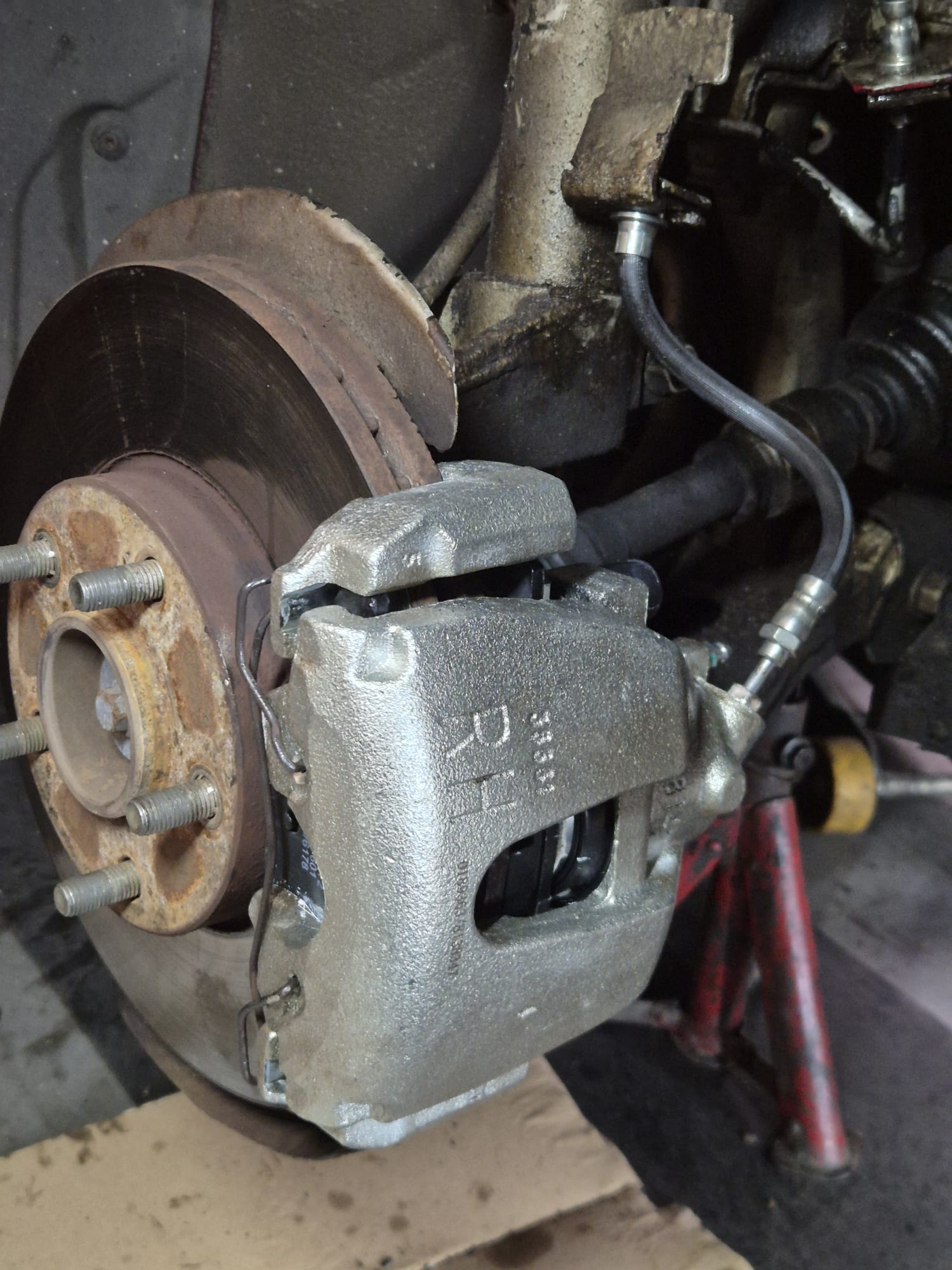 Voorafgaand aan de vervanging van de remmen hebben we besloten om preventief alles te vervangen dat waarschijnlijk toch een keer aan de beurt komt, wat betreft de remmen aan de voorkant dan.