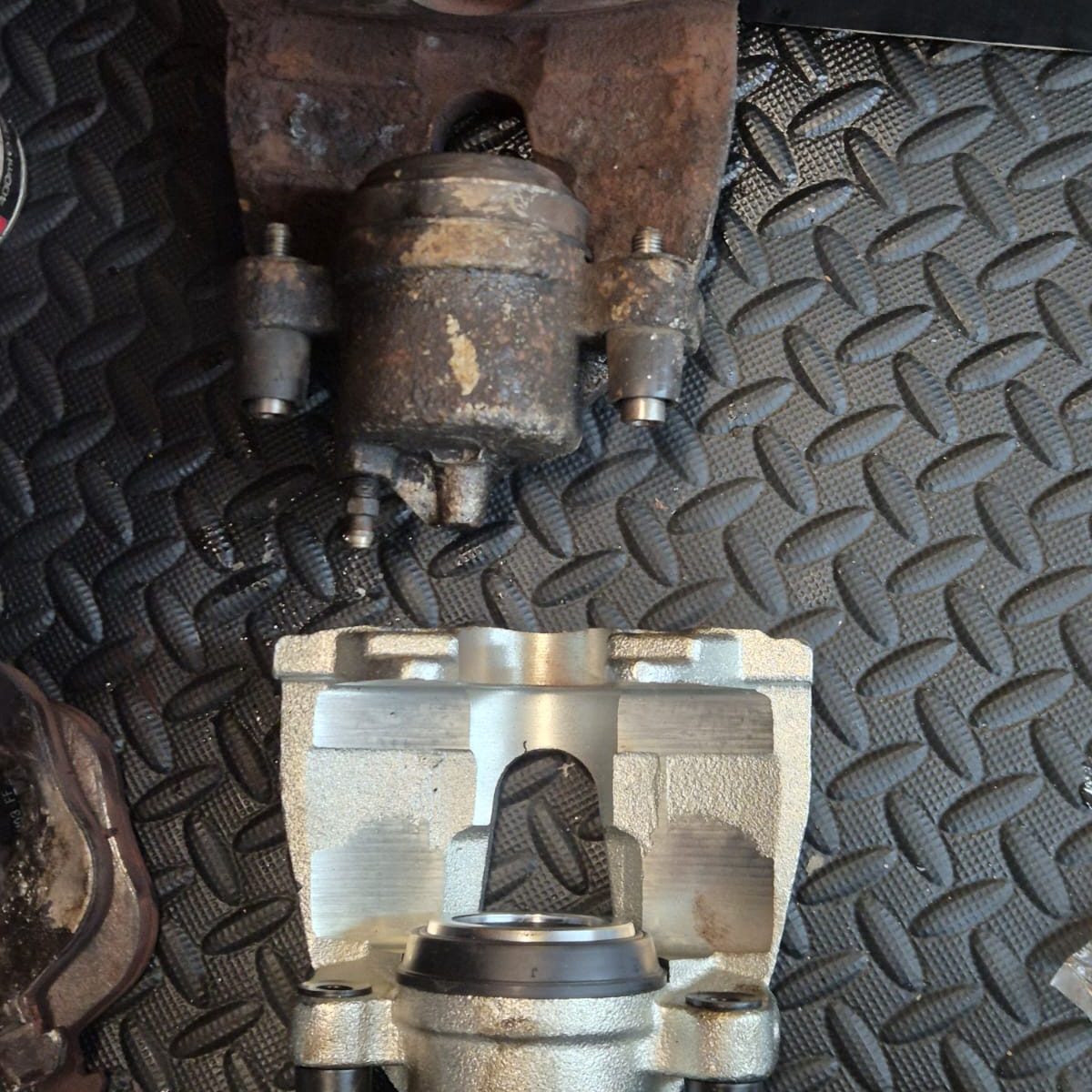 Bij het terugdrukken van de remzuiger ging dat rechts wel maar links helemaal niet. Het verwijderen van de remklauw van remtang ging rechts heel soepel en links heb ik daar met een pers moeten werken om de remschoen met zuiger terug te drukken zodat de remklauw van de schijf en van de remblokken af kon worden gehaald.