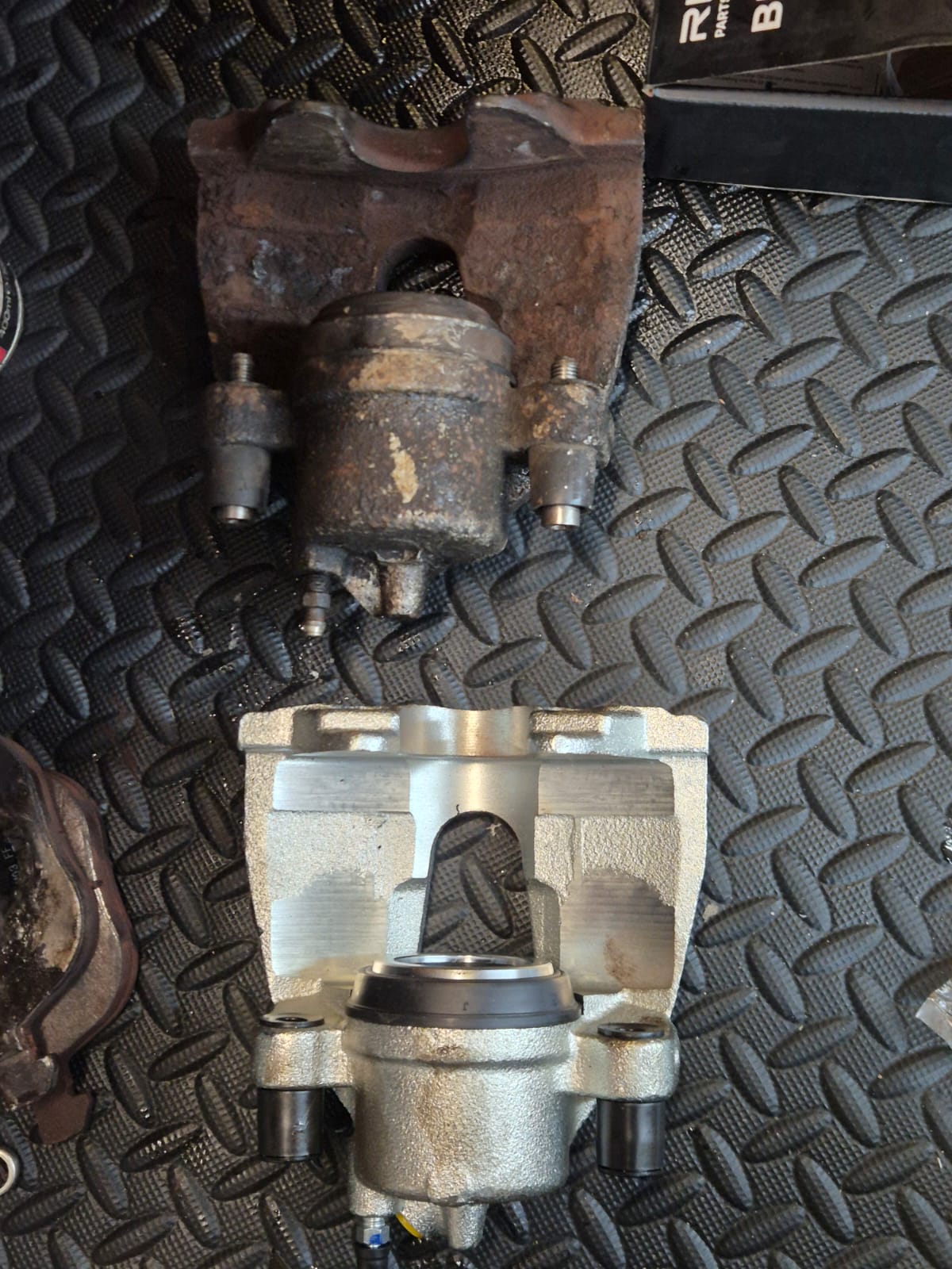 Bij het terugdrukken van de remzuiger ging dat rechts wel maar links helemaal niet. Het verwijderen van de remklauw van remtang ging rechts heel soepel en links heb ik daar met een pers moeten werken om de remschoen met zuiger terug te drukken zodat de remklauw van de schijf en van de remblokken af kon worden gehaald.