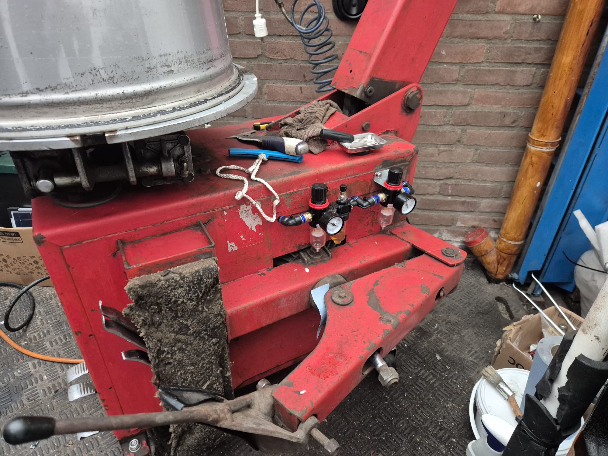 Gisteren (maandag 13 januari 2026) opgehaald in Barneveld: Een goed gebruikte Corghi bandenwisselmachine voor de wielen/banden van de oude auto’s.