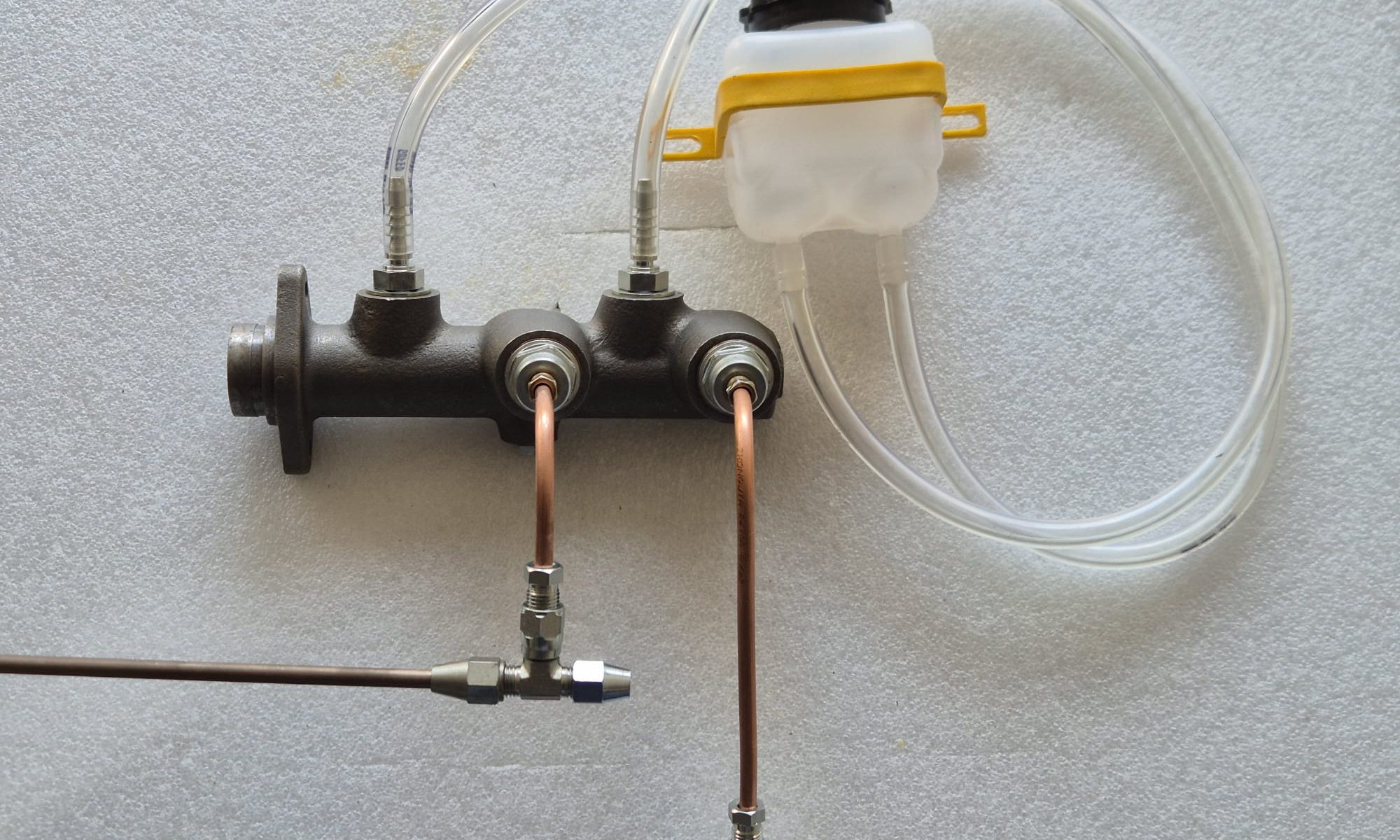 Ik wil het systeem graag ombouwen naar een diagonaal gescheiden remsysteem met een tanden-hoofdremcylinder met 2 druk-kamers. Vanaf (ik dacht) 1968 is dat een verplichting bij alle auto’s en dat mag dan kruislings gescheiden of voor/achter gescheiden (bij gelijke typen remmen).